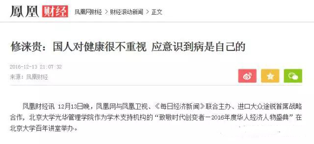 修正藥業(yè)的老板修淶貴就曾公開表示“國人對健康很不重視,應(yīng)意識到病是自己的”